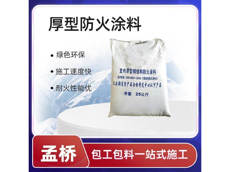 厚型钢结构防火涂料由特制膨胀蛭石,无机胶结材料、防火添加剂、耐高温増增强材料复合化学助剂等制作而成。该涂料具有优异的防火隔热性质,可做为各类建筑钢结构、隧道、钢筋混疑土结构的梁、柱、墙、楼板的防火层,其防火性能、理化机械性能均达到GB14908-2002标准要求